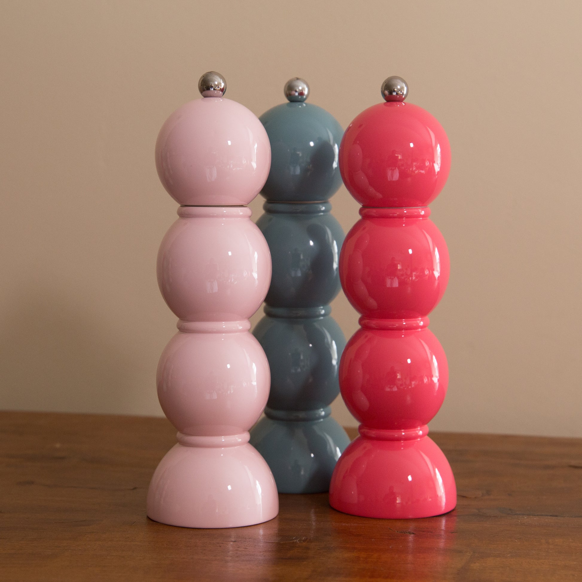 Discover the exclusive Addison Ross bobbin mill in a delicate lacquer finish. Crafted from FSC-certified rubber wood and polished with eight layers of high-gloss lacquer, this elegant mill features a ceramic grinding mechanism activated by a clockwise turn. It includes both stainless steel S and P knobs, allowing you to choose between grinding salt or pepper. Ideal for dry rock salt crystals or black peppercorns, this stylish mill adds charm and versatility to your kitchen. Please avoid using it with sea salt, wet salt, or pink peppercorns.