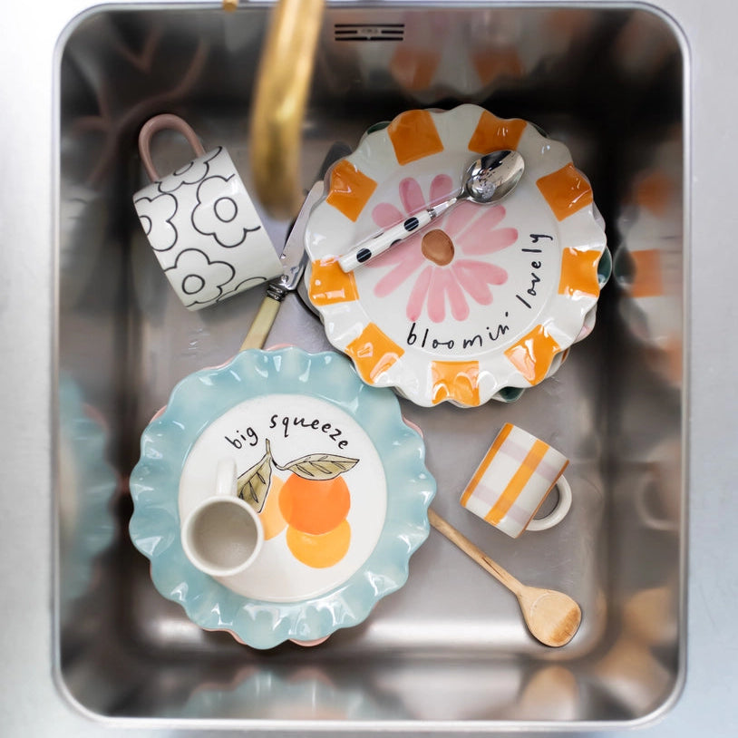 Nothing says summer like this vibrant plate with a gorgeous painting of a Echinacea flower. This vibrant hand-glazed plate, finished with a beautiful scalloped rim is a must-have for any kitchen.