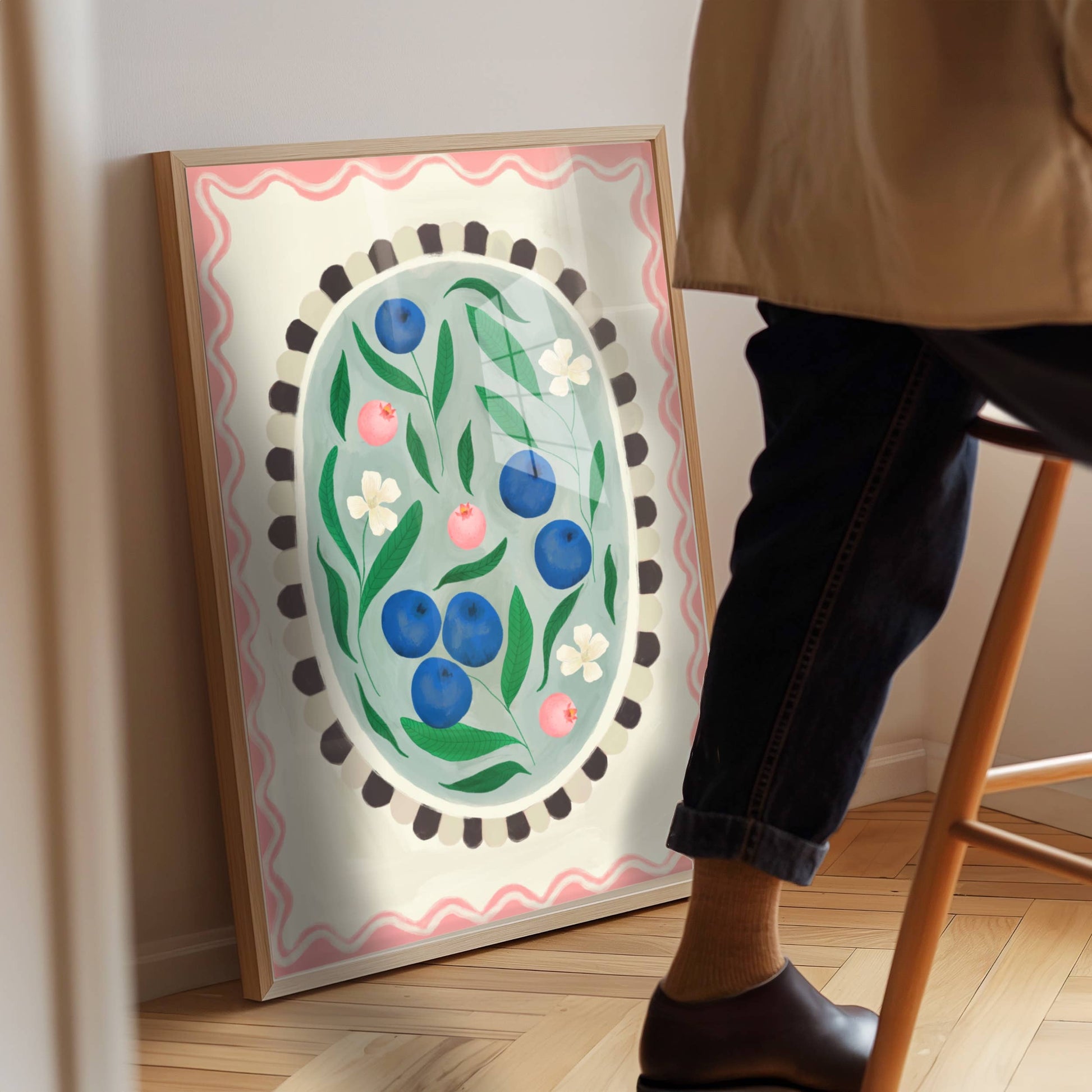 Kate Fox Blueberry Oval Hand Drawn Art Print in A3