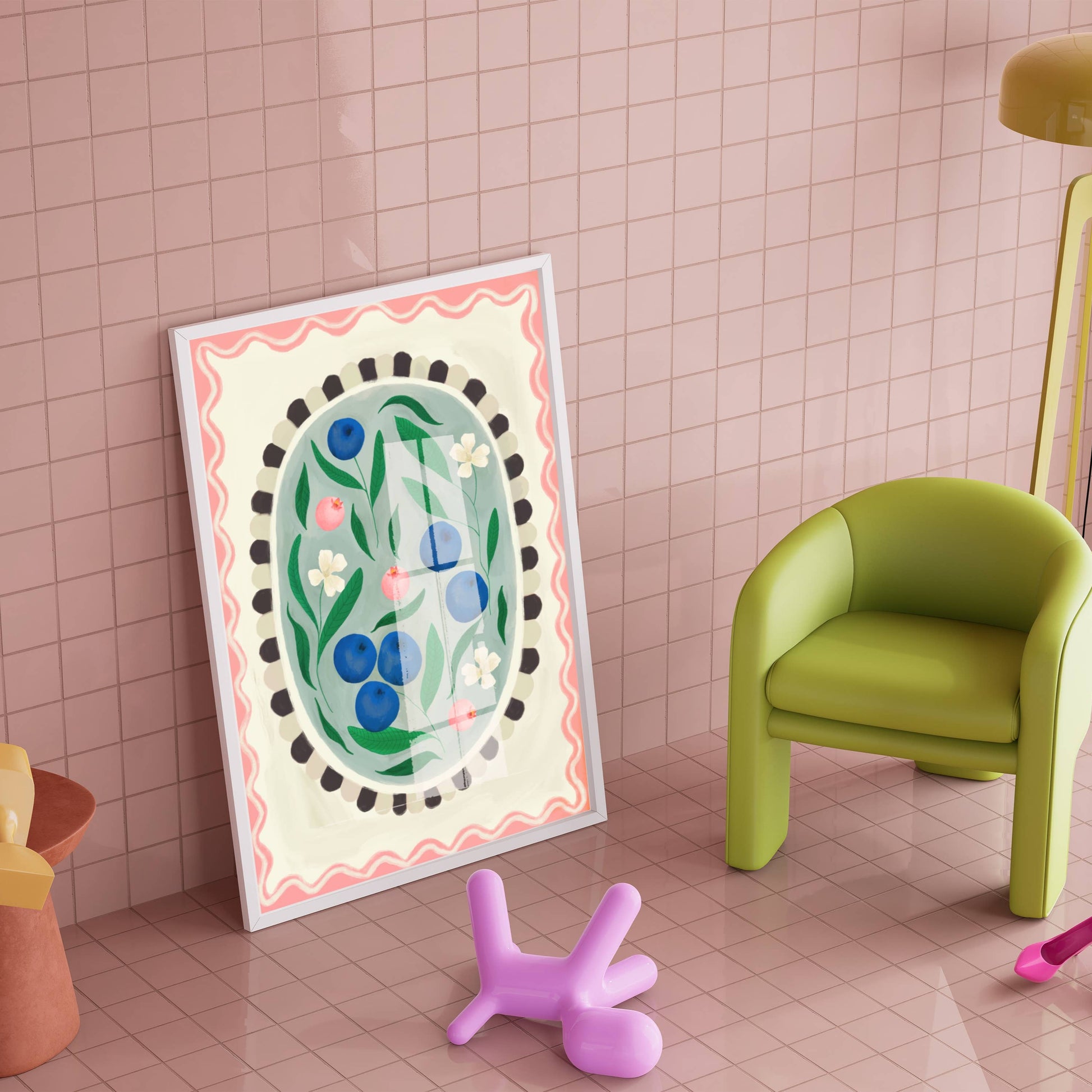 Brighten your kitchen walls with this stunning Blueberry art print, enhanced by a vibrant border that adds depth and charm. This colourful artwork brings a fresh, inviting atmosphere to your cooking space, making every meal preparation more enjoyable. Printed on high-quality material, it offers vivid hues and lasting durability. Perfect for those who appreciate both art and kitchen aesthetics, this piece transforms ordinary walls into a lively, tasteful focal point. Add a splash of natural beauty and cheerful colour to your home with this delightful blueberry-themed print.