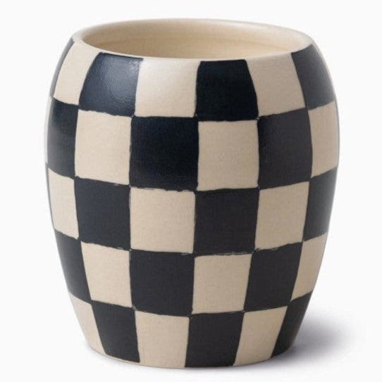 Discover the Paddywax Checkmate Collection, a stylish range of scented jar candles inspired by the trendy checkerboard print. Each hand-painted candle comes in a unique candle vessel, making it a decorative candle that stands out as a statement décor piece. Designed for reusability, these Paddywax Checkmate Collection candles transform into a perfect candle as vase, candle as mug, or general décor item once the home fragrance is enjoyed.