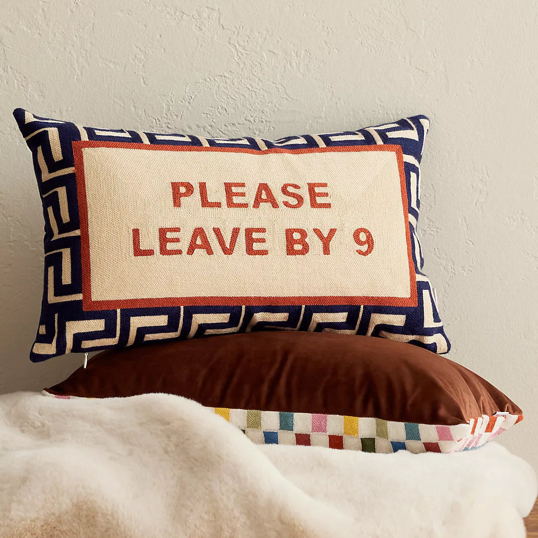 Pillow Drop 'Please Leave By 9' Needlepoint Scatter Cushion