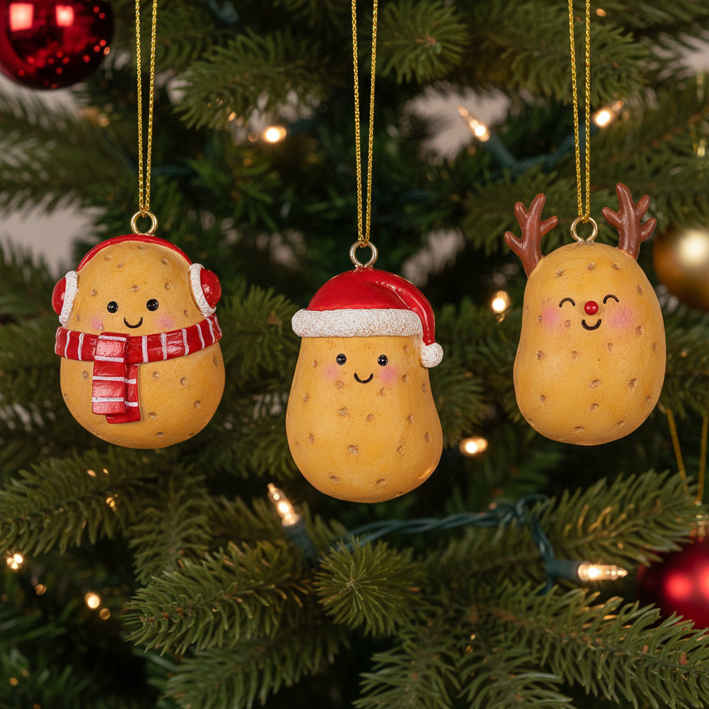 Sass & Belle Happy Potatoes Hanging Christmas Decorations in a Set of 3