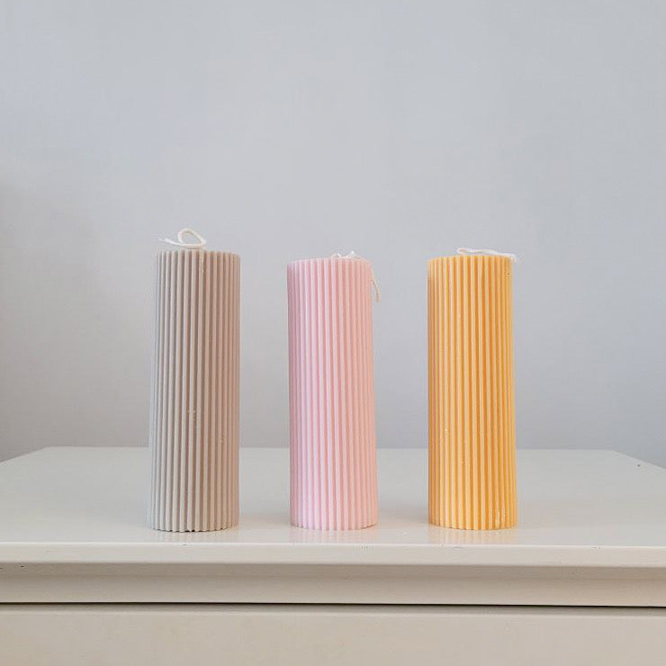 Infuse your space with the sophisticated texture and elegant charm of our hand-poured ribbed pillar candles. Crafted from 100% vegan soy wax, these candles offer a cleaner, longer burn and are a sustainable choice, helping to reduce your carbon footprint while filling your room with subtle, amazing scents that create a warm and inviting atmosphere (if only smellivision existed!). Made with eco-friendly materials, these ribbed pillar candles beautifully combine style and environmental responsibility.